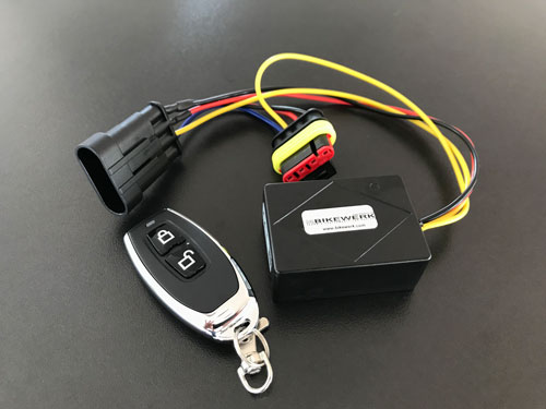 Speziell für die neuen, elektronisch gesteuerten Klappenauspufftöpfe der Firmen KessTech®und Jekill & Hyde®, Remus® und Penzl® V2 EURO 4 und EURO 5 an Harley-Davidson® Motorrädern ist unsere brandneue Funkfernbedienung "TrickBox EASY" ausgelegt. Diese werden ausschließlich über CanBus-Signale gesteuert. Hier kann nur unsere aktuellste Entwicklung, die "TrickBox EASY Fernbedienung" helfen, denn mit ihr lassen sich alle Auspuffsysteme von KessTech® ESE, bzw. Jekill & Hyde® Smartbox 1 & 2, Remus® und Penzl® V2 EURO 4 und EURO 5 , ab 2017 bis heute, aber auch die Upgrades der Vorgänger-Anlagen auf ESE oder SmartBox 2, frei steuern. Ein kurzer Druck auf die LOCK-Taste des kleinen, unauffälligen Handsenders, der in jede Hosentasche passt, genügt. So entscheidest du ab sofort selbst, ob du nun leise, moderat oder auch mit vollem Sound im "offenen" Race-Modus, jeweils mit fixierten Klappen auf der Strecke unterwegs sein willst. Achtung: Ein Betrieb, bzw. Einbau unserer BikeWerk TrickBox Produkte ist für den öffentlichen Straßenverkehr nicht zugelassen und nur für Rennzwecke, Showzwecke oder zum Einsatz auf abgesperrten, nicht öffentlichen Flächen geeignet. Die BikeWerk "TrickBox EASY Fernbedienung" ist eine komplette Eigenentwicklung aus unsere Hause und natürlich "Made in Germany".